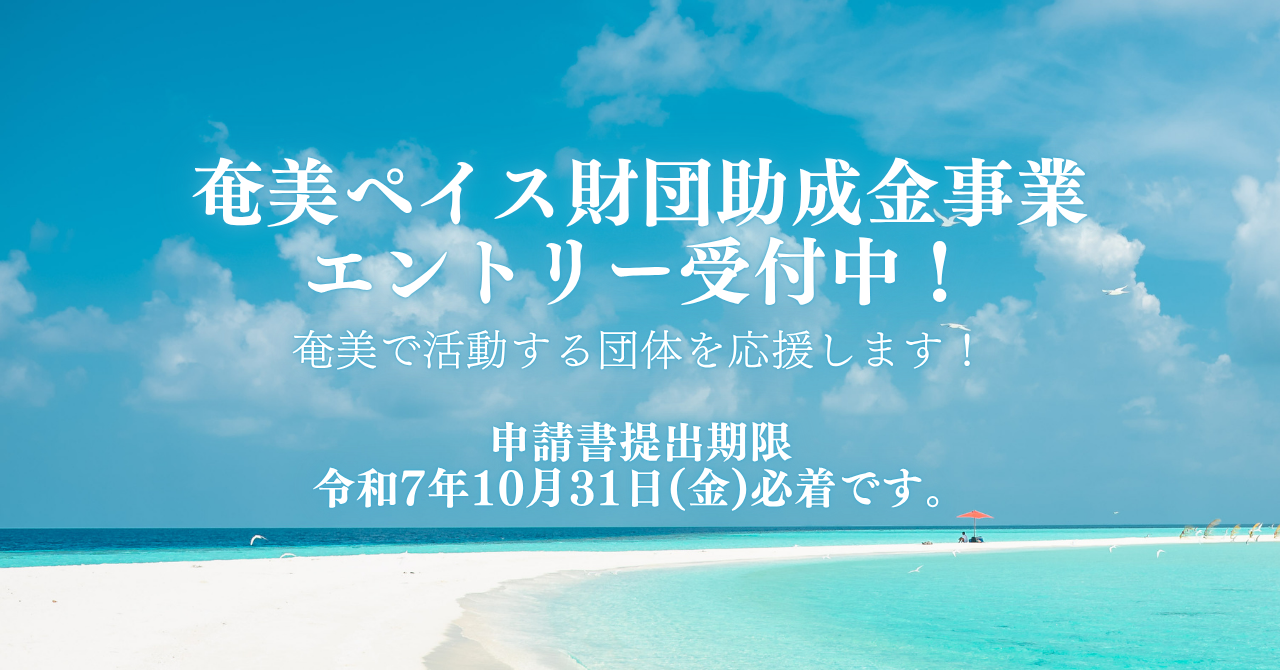 一般財団法人奄美ペイス財団は、「島の内側から育む 幸福と誇り」という理念のもと、奄美群島の持続可能で多様な地域社会の実現に寄与することを目的に、地域住民による自主的・公益的な活動を支援する助成事業を実施いたします